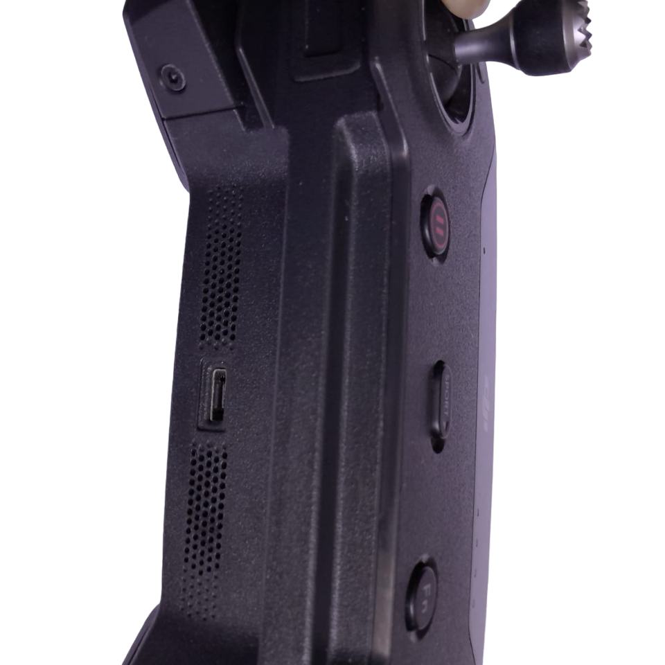 The remote controller can connect to a mobile device wirelessly and display a live video feed via DJI GO 4. Its folding clamps allow you to attach your mobile device securely. Maximum remote controller battery life is approximately 2.5 hours. ***